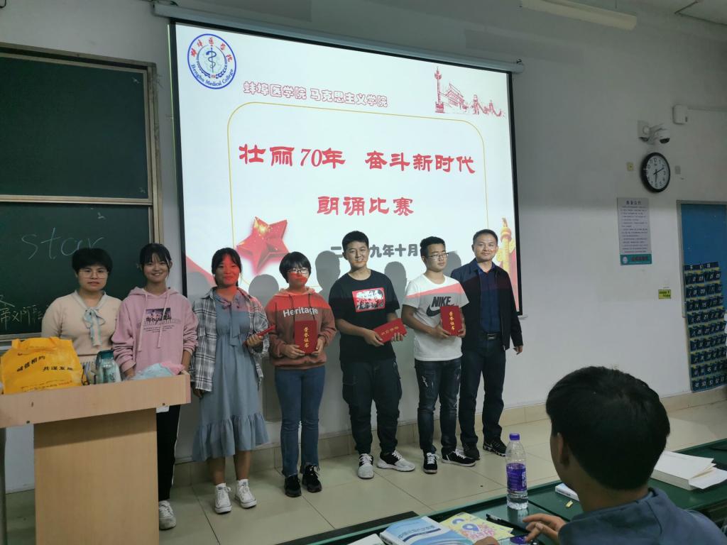 中国近现代史纲要教研室在理论教学楼104教室,组织开展了“壮丽七十年,奋斗新时代”主题朗诵比赛。