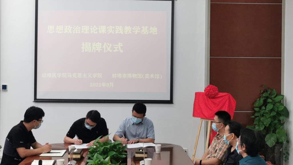 共建双方首先签订了“蚌埠医学院思想政治理论课实践教学基地协议书”并共同揭牌,同时就实践育人、合作共建、资源共享等进行了深入交流讨论。双方表示,将在今后的合作中进一步紧密协作、密切配合、抓好落实、做好建设,不断促进合作双方在理论宣教、文化传播、实践教育、志愿服务等方面的合作交流。