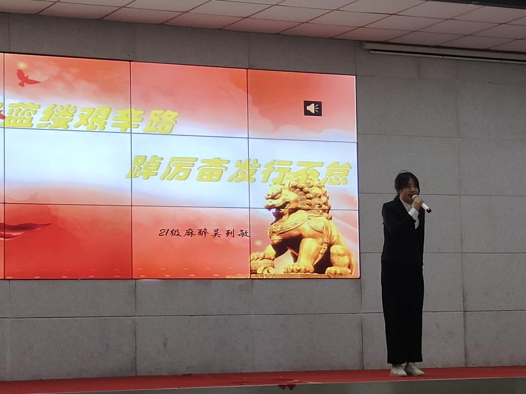 为有效扩大覆盖面和提高参与率,突出载体创新,本次活动在本学期习近平新时代中国特色社会主义思想概论课所有教学班级,首先,采取课堂宣传动员、组织线下初赛、推送决赛选手;然后,打通线上参赛渠道,由学校学生社团“交际与口才爱好者协会”面向全校学生线上宣传动员、选手自行上传参赛视频、组织线上初赛、推送决赛选手;最后,根据报名情况合理分配两个渠道进入决赛的参赛选手名额。决赛于5月12日在G1教室举行,入围参赛选手紧扣主题,演讲激情澎湃,有的感悟思想伟力、有的畅谈青春理想、有的抒发奋斗誓言,每一段演讲都深入人心,展现了青年大学生的朝气与风采,赢得了在场老师和学生的热烈掌声和一致好评。