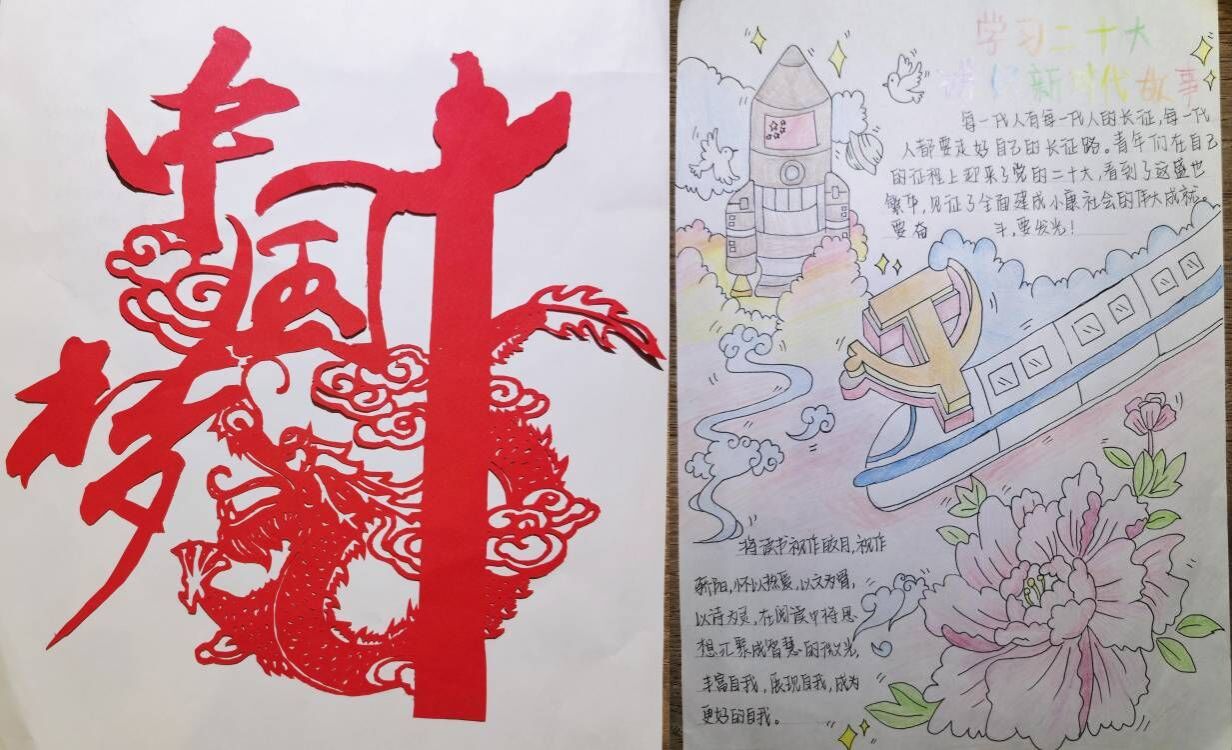 此次思政课实践教学活动以“突出实践育人,讲好大思政课”为理念,以手抄报、书法、绘画、剪纸、海报等形式为载体,共收集40余幅作品。手绘海报,诠释青年责任与担当;创意剪纸,传递青年学子家国情怀;原创绘画,讲述青年的奋斗故事……别开生面的创意手工,传递正能量,突出创新思维与家国情怀,受到学子热捧。通过此次手工创意实践活动,大家纷纷表示,习近平总书记从“七个着力”为我们指明了践行习近平文化思想的具体路径。作为青年学子,我们不仅要做习近平文化思想的研究者、宣传者,还要做习近平文化思想的实践者,树立远大理想,以坚定的历史自信、文化自信勇挑推动中华文明发展重担,在新时代的奋进征程中谱写青春华章。