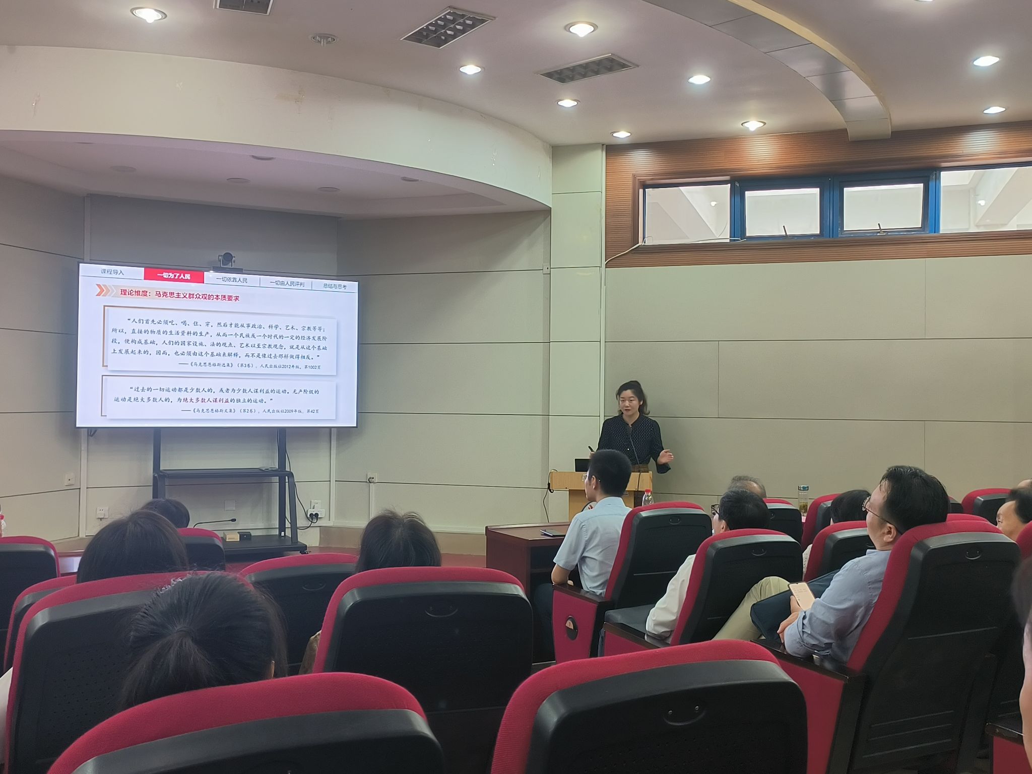 岁老根弥壮,阳骄叶更阴。老教师是马院的宝贵财富,是青年教师奋发向上的不竭动力。随后,齐梅、赵元勤两位老师结合各自几十年的从教经历,围绕如何清白做人、踏实做事、爱岗敬业、为社会服务和站好三只讲台、热爱教学、喜爱学生及如何引导学生等方面,为全体思政课教师分享了深情感人的从教感悟。