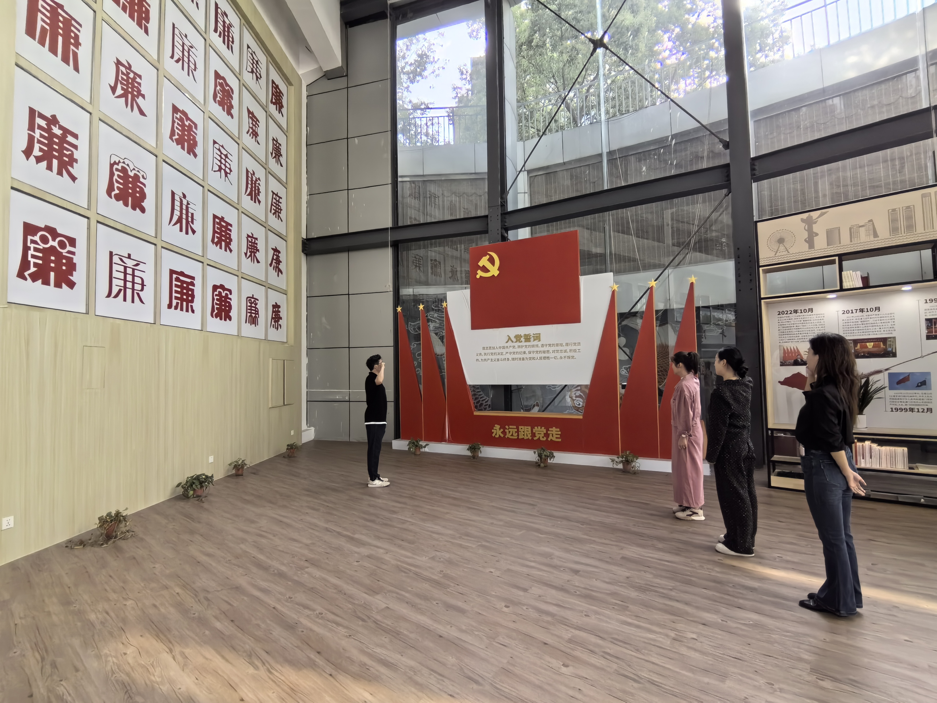 基地廉字墙下,鲜红的党旗熠熠生辉。在党支部书记吴雪龙的领誓下,全体党员同志重温入党誓词。铿锵有力的誓言在大厅内久久回荡,党员们神情庄重,高举右拳,字字千钧的誓词唤醒入党初心,更加坚定了践行中央八项规定及其实施细则精神、永葆清正廉洁政治本色的信念。