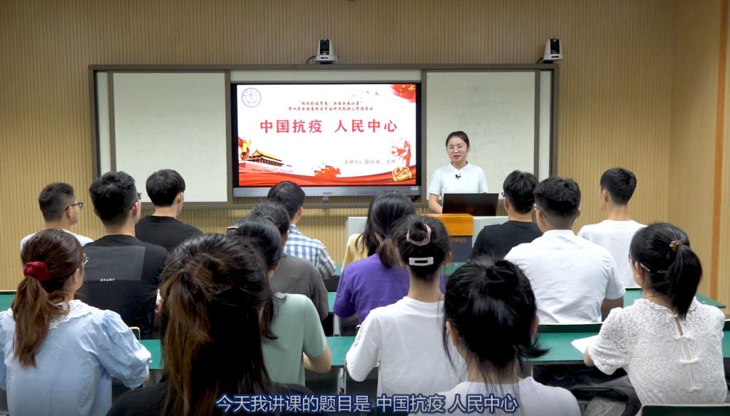 张翮老师指导学生组建团队,围绕“马克思主义基本原理概论”课程的有关章节内容,以“绽放抗疫青春·决胜全面小康”为主题开展教学活动。团队全体成员团结一心、不畏困难,以饱满的热情、昂扬的斗志全情投入其中,经过反复推敲和演练,最终成功录制了题为《中国抗疫,人民中心》的思政课公开课展示视频,展现了蚌医学子的理论素养和精神风貌。